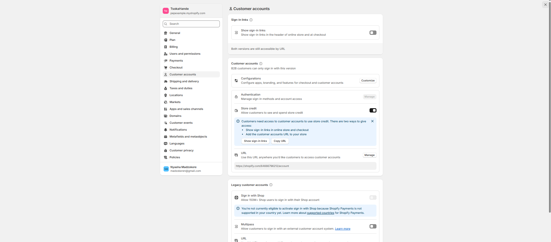If your store is still using “legacy” accounts, you’ll need to upgrade. - Go to your Customer Account settings in Shopify Admin